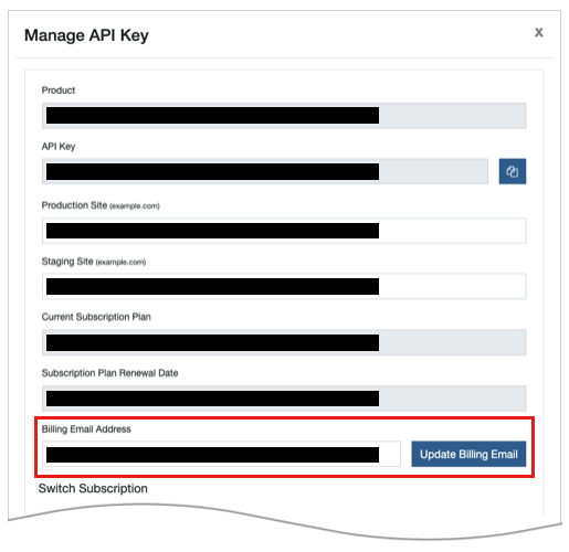 Some of Eniture Technology's products require the purchase of an API key, which is most commonly the case for BigCommerce, Magento, and WooCommerce merchants. When the API key is obtained, an email address is collected to which notices and billing receipts are sent. Follow the instructions below if you need to change this email address.